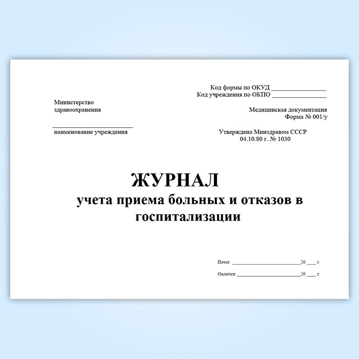 Журнал учета приема больных и отказов в госпитализации (форма 001/у) в Верее купить
