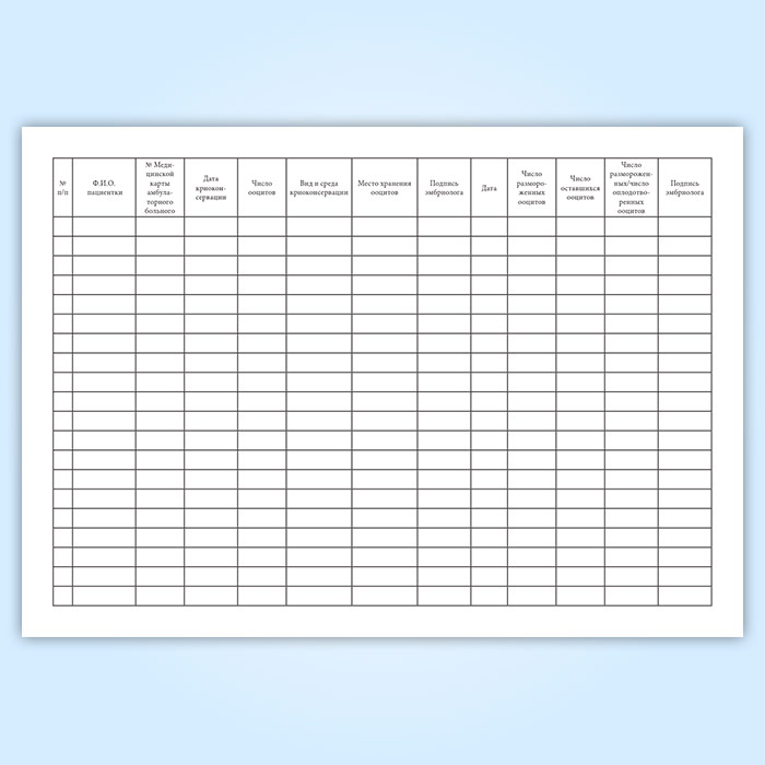 Журнал учета, хранения и использования криоконсервированных ооцитов пациенток в Верее купить