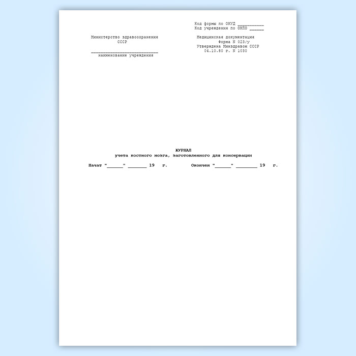 Журнал учета костного мозга, заготовленного для консервации (форма 023/у) в Верее купить
