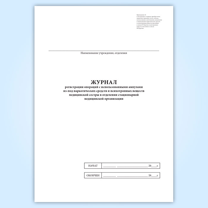 Журнал регистрации операций с использованными ампулами из-под наркотических средств и психотропных веществ медицинской сестры в отделении стационарной медицинской организации в Верее купить