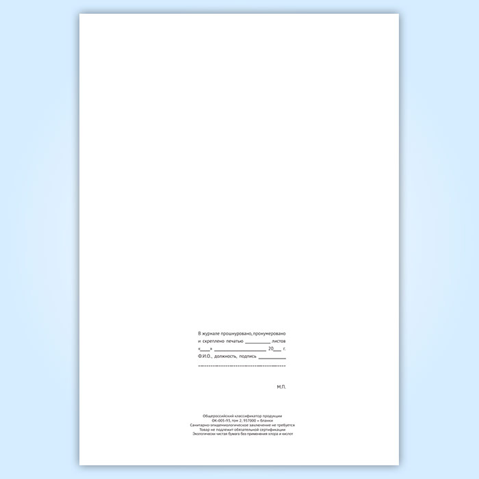 Вы получаете печатную продукцию прошнурованной и c местом для вашей печати в соответствии с действующими нормативными документами: