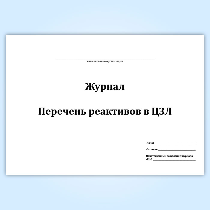Журнал «Перечень реактивов в ЦЗЛ» в Верее купить