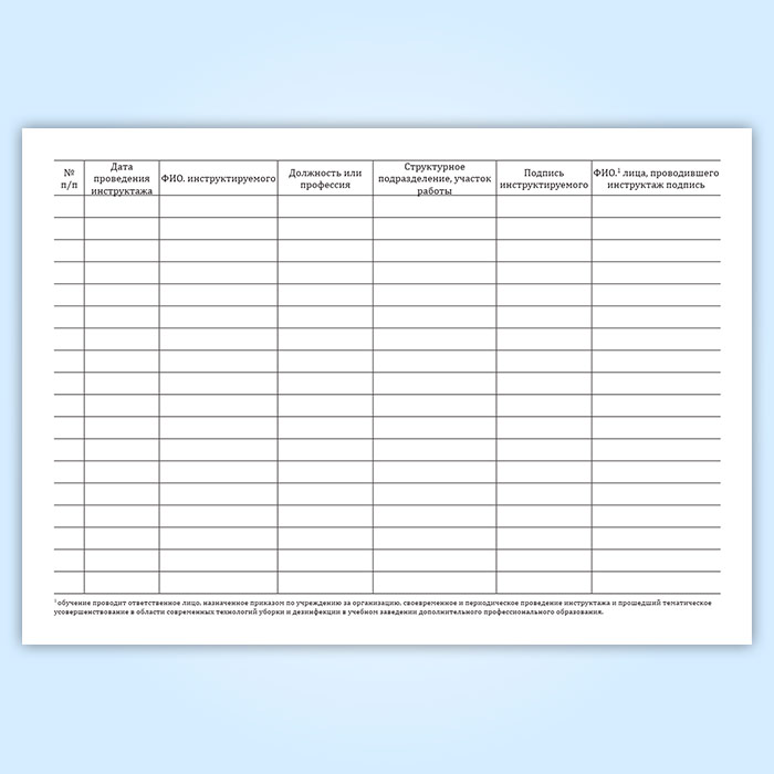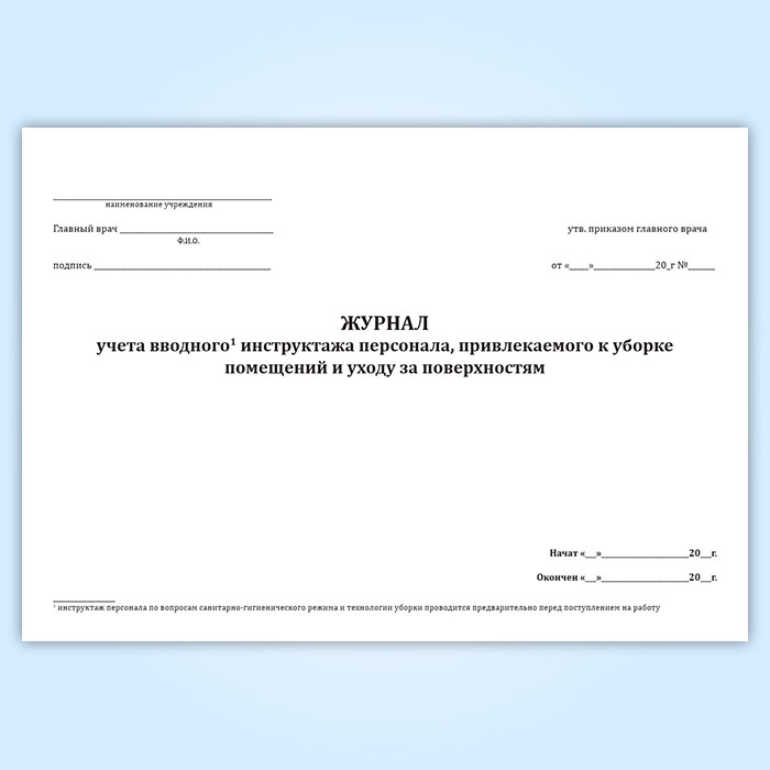Журнал учета вводного инструктажа персонала, привлекаемого к уборке помещений и уходу за поверхностями в Верее купить