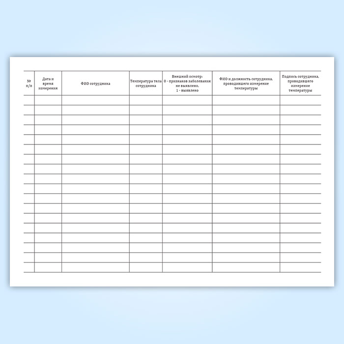 Журнал учета измерения температуры сотрудников (горизонтальный) в Верее купить