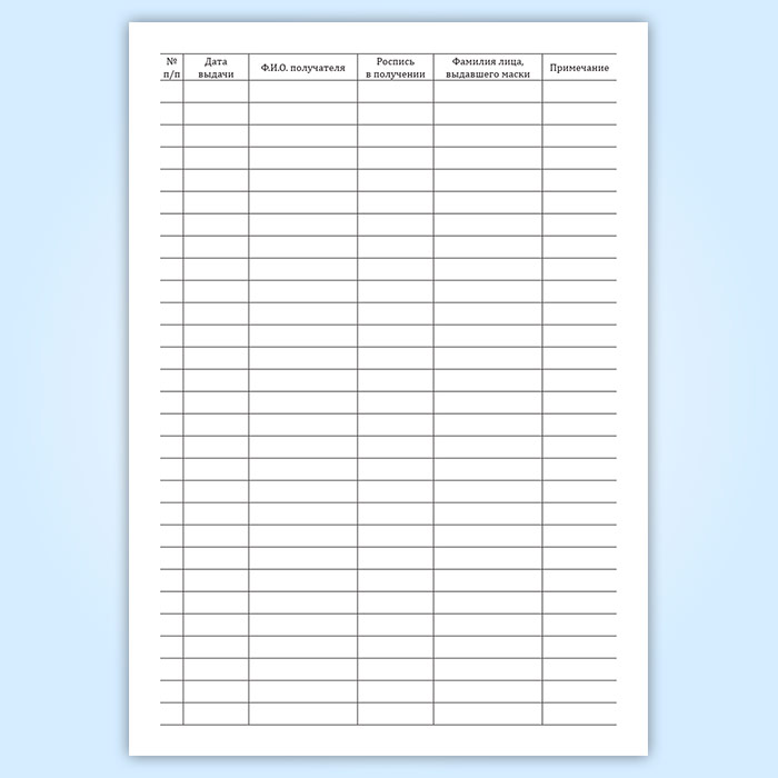 Журнал регистрации выдачи медицинских масок сотрудникам в Верее купить