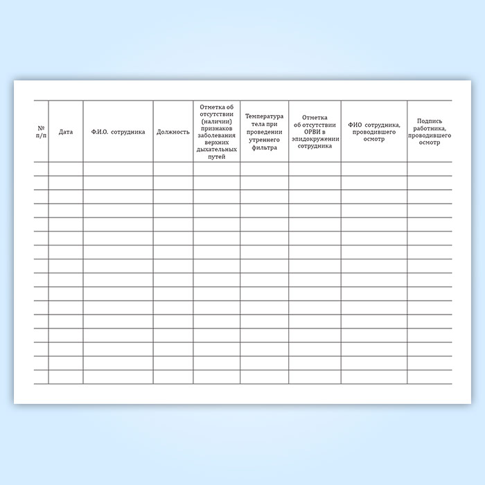 Журнал утреннего фильтра сотрудников в Верее купить