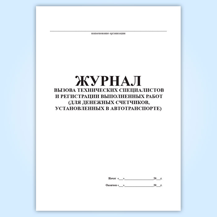 Журнал вызова технических специалистов и регистрации выполненных работ (для денежных счетчиков, установленных в автотранспорте) в Верее купить