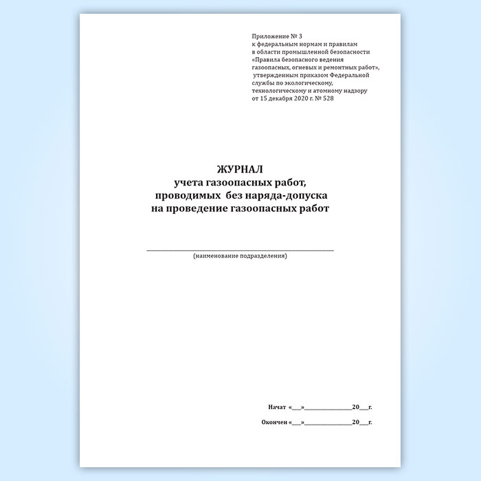 Журнал учета газоопасных работ, проводимых без наряда-допуска на проведение газоопасных работ в Верее купить