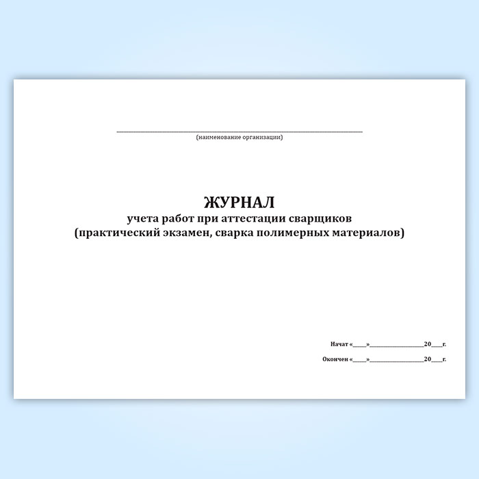 Журнал учета работ при аттестации сварщиков (практический экзамен, сварка полимерных материалов) в Верее купить