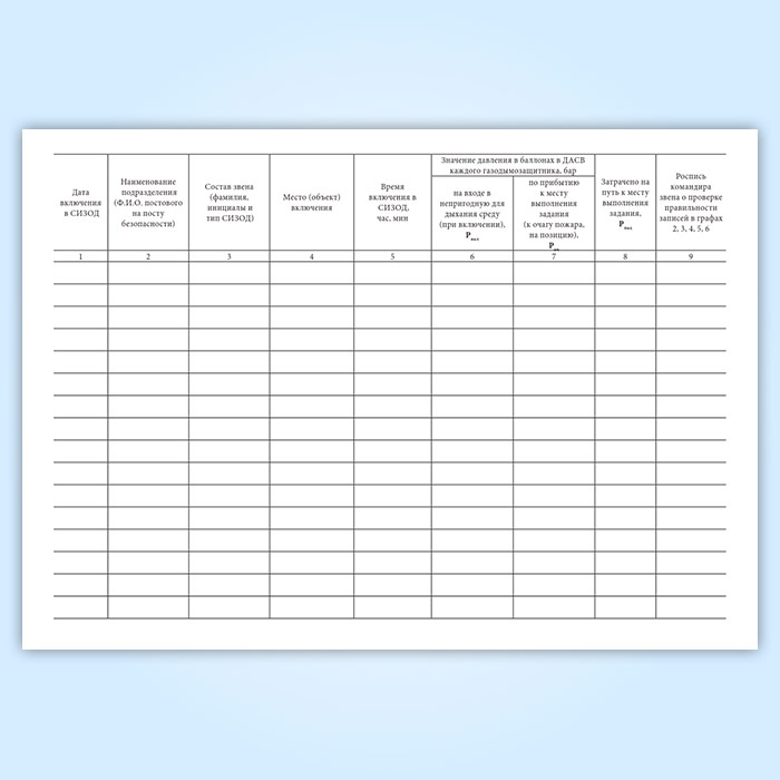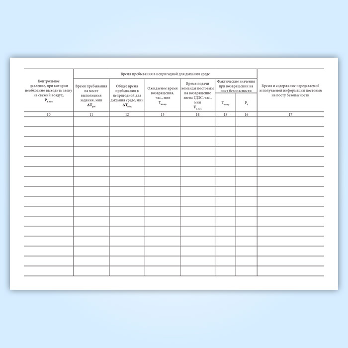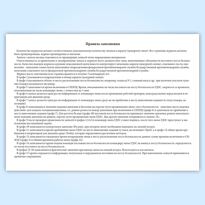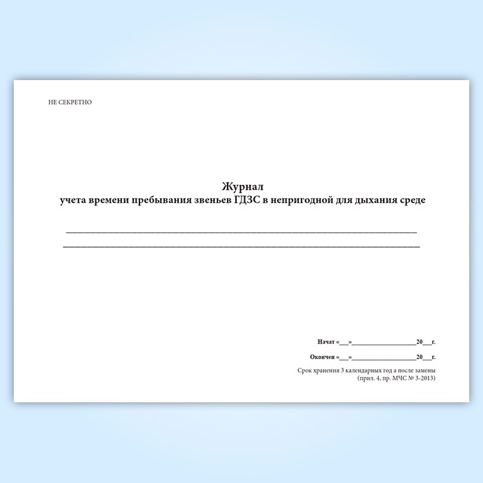 Журнал учета времени пребывания звеньев ГДЗС в непригодной для дыхания среде в Верее купить