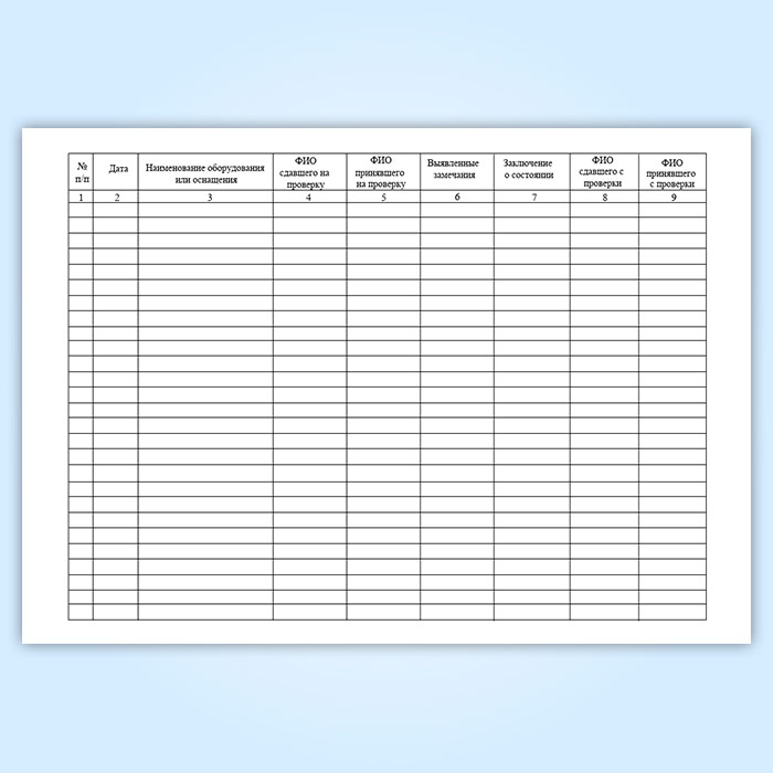 Журнал регистрации сдачи и выдачи оборудования и средств технического оснащения НАСФ на проверку в Верее купить