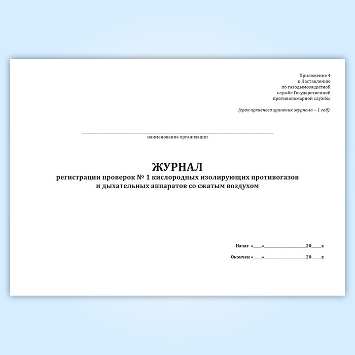 Журнал регистрации проверок № 1 кислородных изолирующих противогазов и дыхательных аппаратов со сжатым воздухом в Верее купить