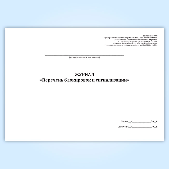 Журнал «Перечень блокировок и сигнализации» в Верее купить
