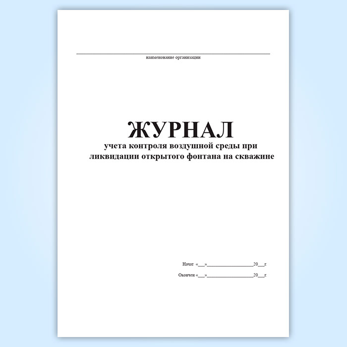 Журнал учета контроля воздушной среды при ликвидации открытого фонтана на скважине в Верее купить