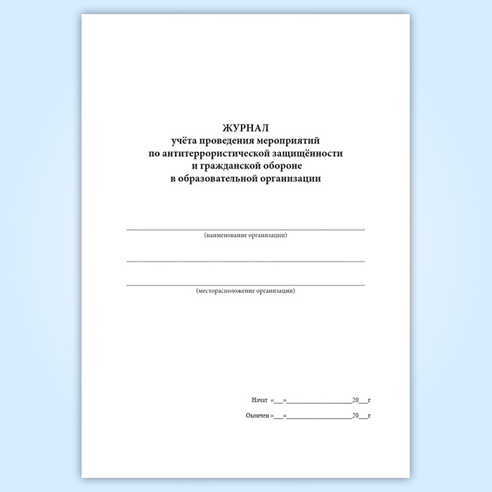 Журнал учета проведения мероприятий по антитеррористической защищенности и гражданской обороне в образовательной организации в Верее купить