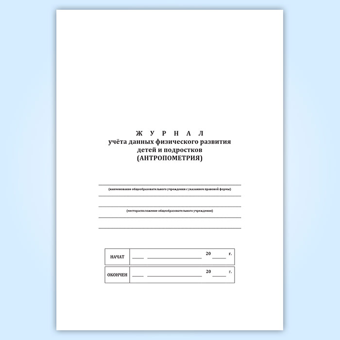 Журнал учета данных физического развития детей и подростков (антропометрия) в Верее купить