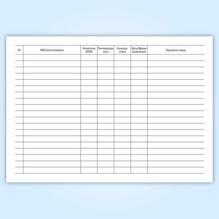 Журнал учета воспитанников с выявленными симптомами ОРВИ в Верее купить