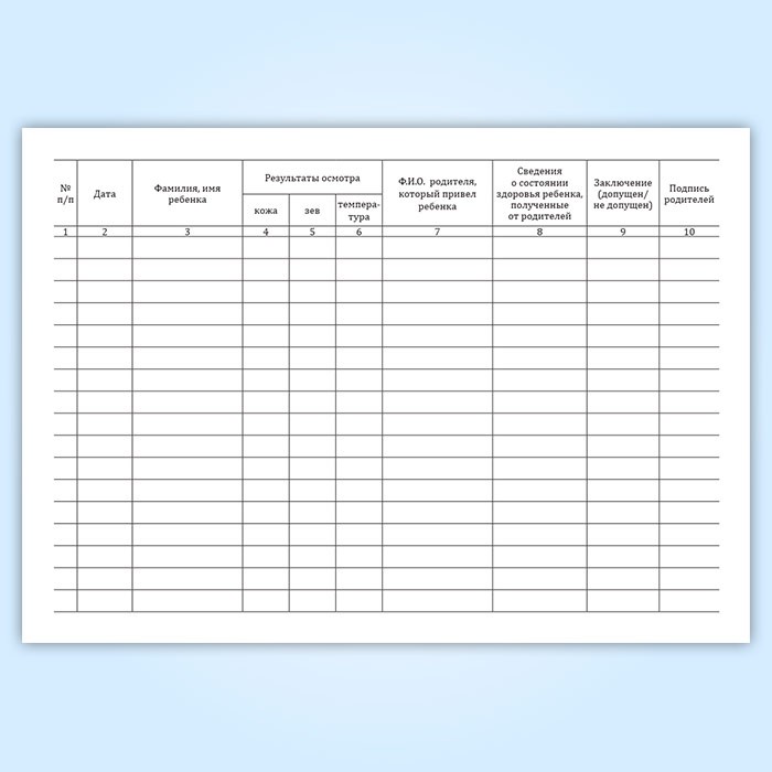 Журнал утреннего фильтра (осмотра) детей в Верее купить