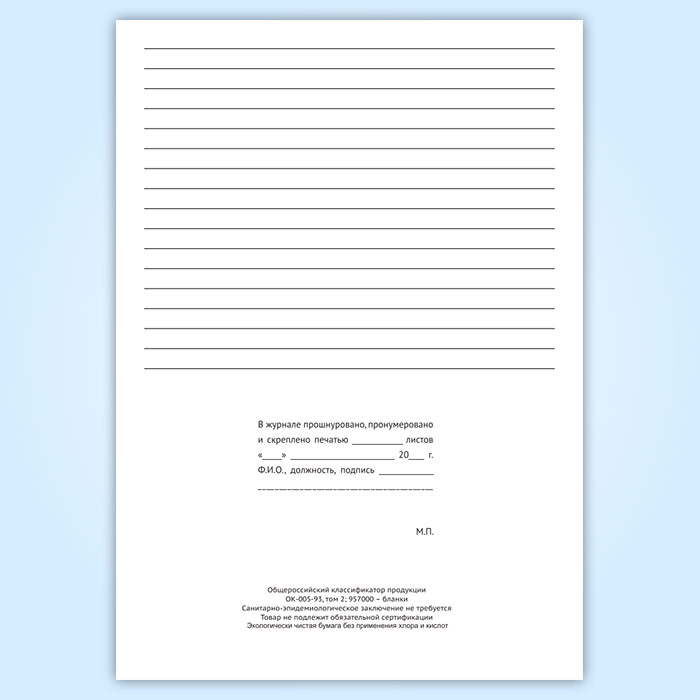 Вы получаете печатную продукцию прошнурованной и c местом для вашей печати в соответствии с действующими нормативными документами: