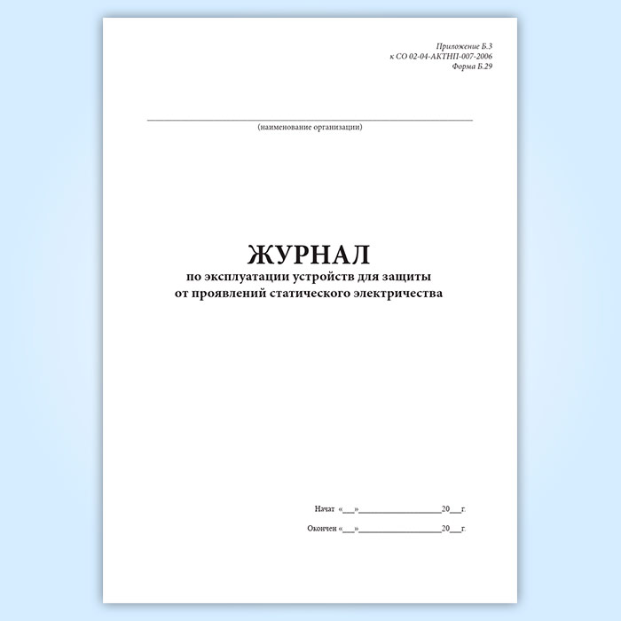 Журнал по эксплуатации устройств для защиты от проявлений статического электричества (форма Б.29) в Верее купить