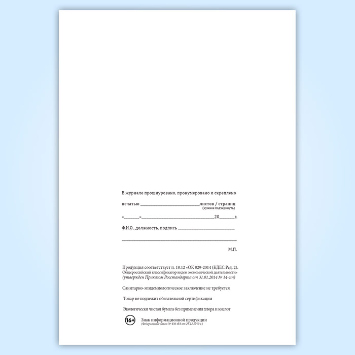 Вы получаете печатную продукцию прошнурованной и c местом для вашей печати в соответствии с действующими нормативными документами: