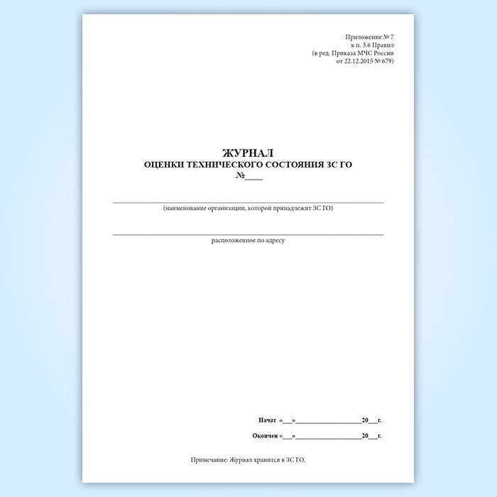 Журнал оценки технического состояния ЗС ГО в Верее купить