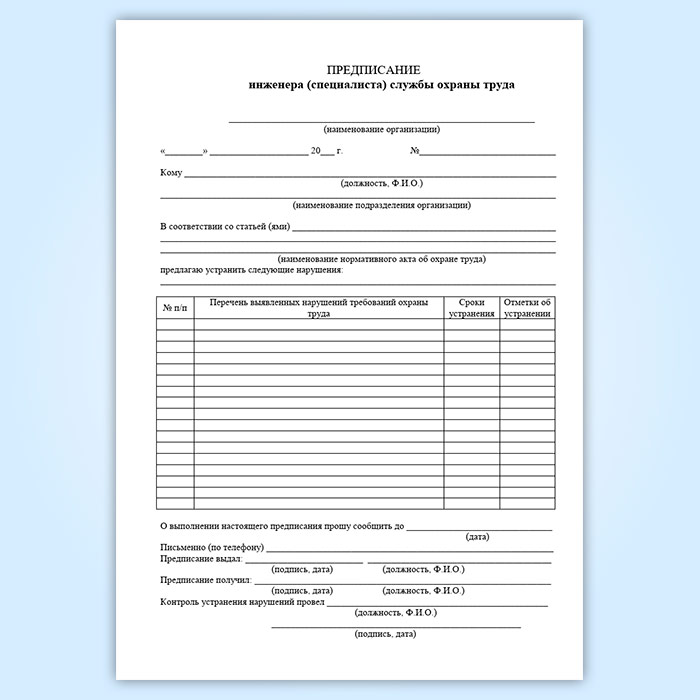 Журнал учета выдачи предписаний инженера (специалиста) службы охраны труда в Верее купить