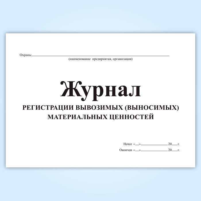 Журнал регистрации вывозимых (выносимых) материальных ценностей в Верее купить