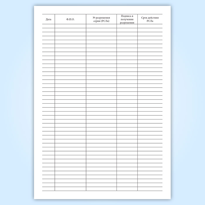 Журнал регистрации и выдачи поступающих разрешений на хранение и ношение огнестрельного оружия (РСЛа) в Верее купить