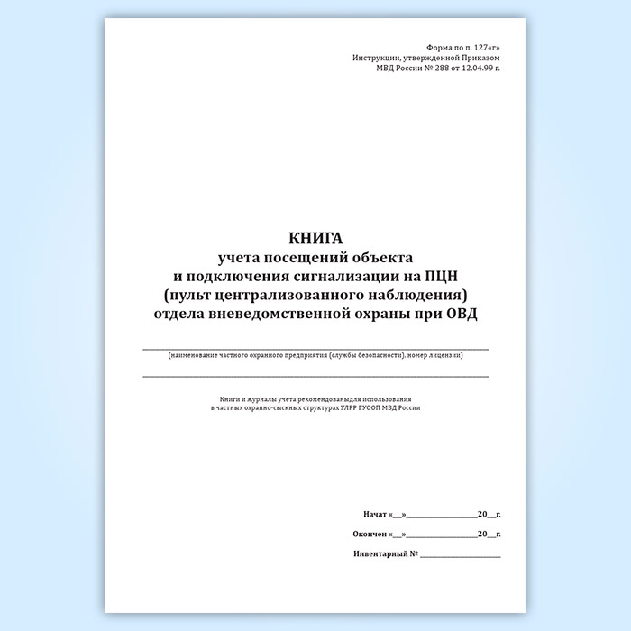Книга учета посещений объекта и подключения сигнализации на ПЦН (пульт централизованного наблюдения) отдела вневедомственной охраны при ОВД (форма 127 г) в Верее купить