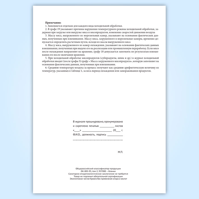 Журнал холодильной обработки мяса и мясопродуктов в камерах охлаждения и замораживания в Верее купить