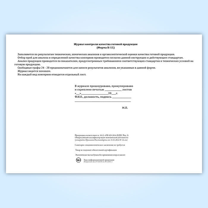 Вы получаете печатную продукцию прошнурованной и c местом для вашей печати в соответствии с действующими нормативными документами: