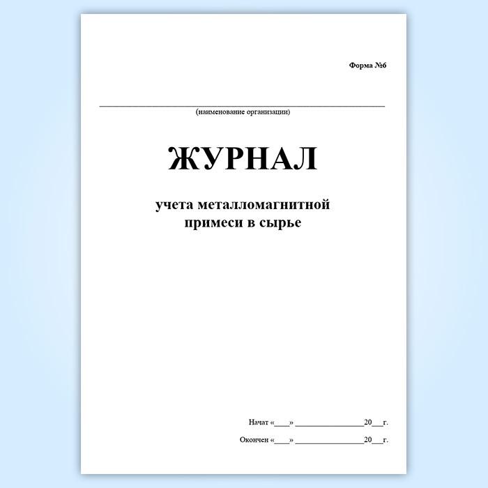 Журнал учета металломагнитной примеси в сырье (форма № 6) в Верее купить