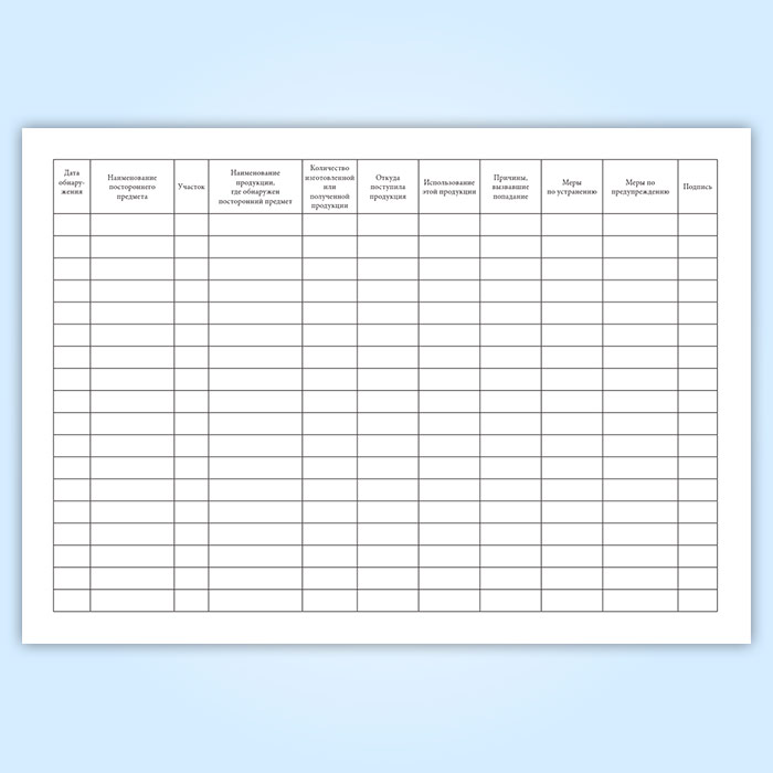 Журнал учета посторонних предметов и включений, обнаруженных в сырье, продукции на производственных участках в Верее купить