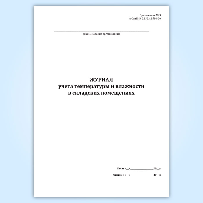 Журнал учета температуры и влажности в складских помещениях (СанПиН 2.3/2.4.3590-20) в Верее купить