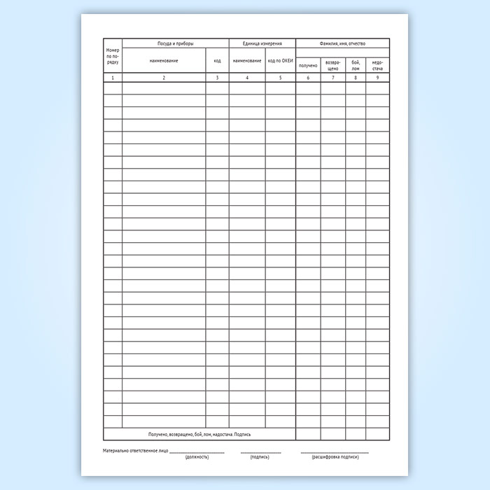 Журнал учета столовой посуды и приборов, выдаваемых подотчет сотрудникам предприятия (специализированная форма 16-ОПит) в Верее купить