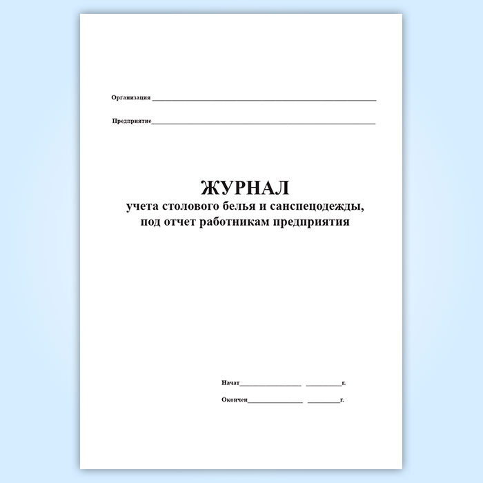 Журнал учета столового белья и санспецодежды, выдаваемой под отчет работникам предприятия в Верее купить