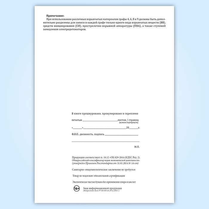 Книга учета выдачи и возврата взрывчатых материалов в Верее купить