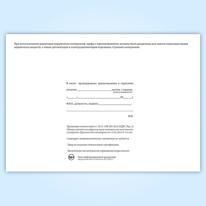 Вы получаете печатную продукцию прошнурованной и c местом для вашей печати в соответствии с действующими нормативными документами: