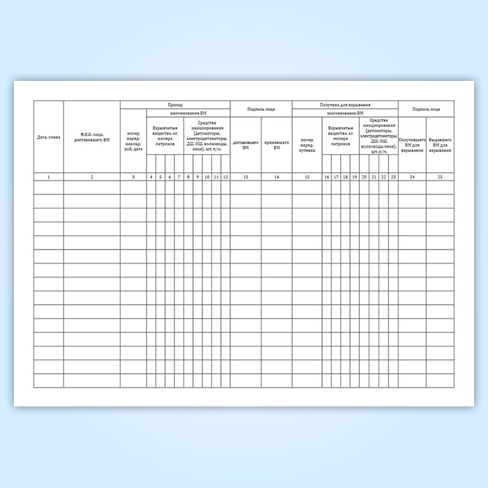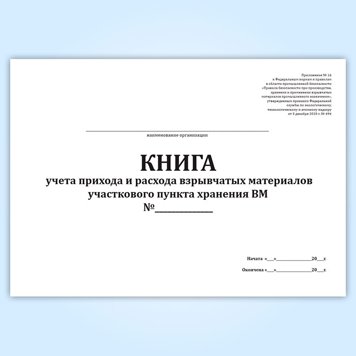 Книга учета прихода и расхода взрывчатых материалов участкового пункта хранения ВМ в Верее купить