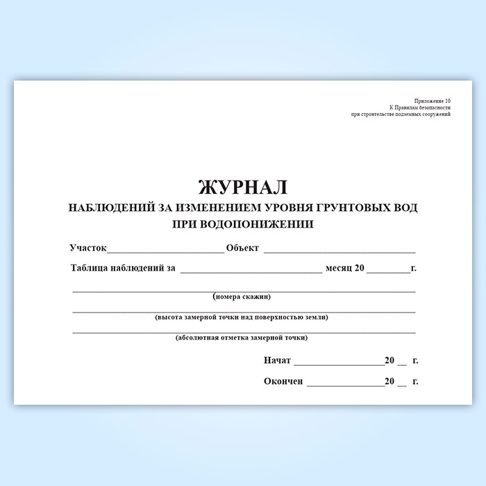 Журнал наблюдений за изменением уровня грунтовых вод при водопонижении в Верее купить