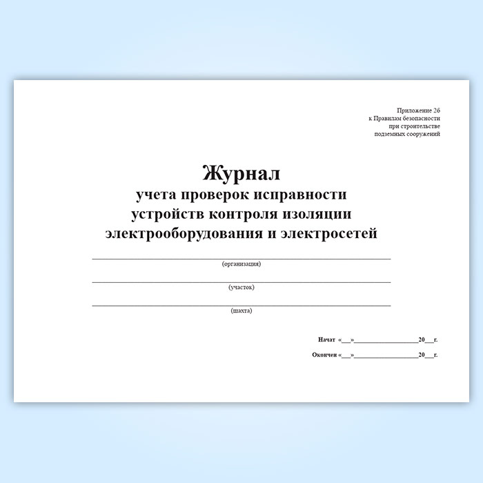Журнал учета проверок исправности устройств контроля изоляции электрооборудования и электросетей в Верее купить