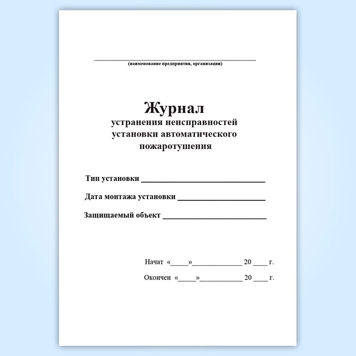 Журнал устранения неисправностей установки автоматического пожаротушения в Верее купить