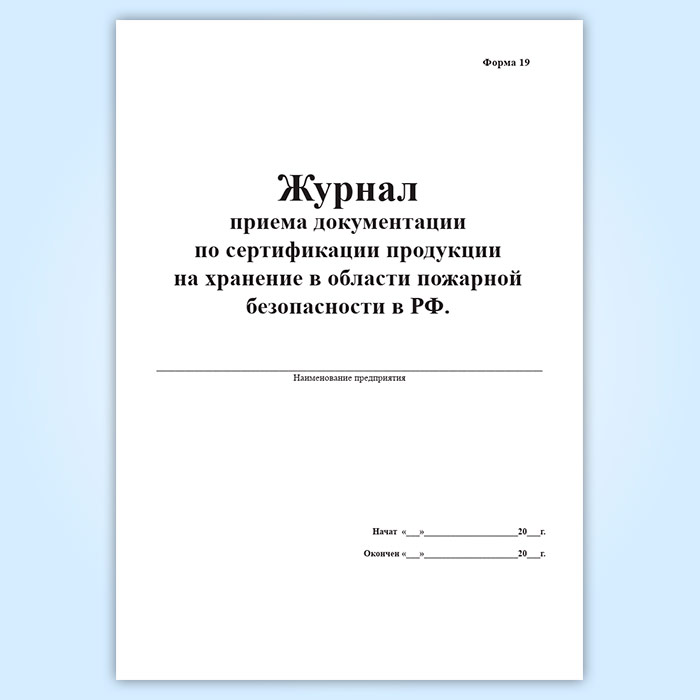 Журнал приема документации по сертификации продукции на хранение в области пожарной безопасности в РФ (форма 19) в Верее купить