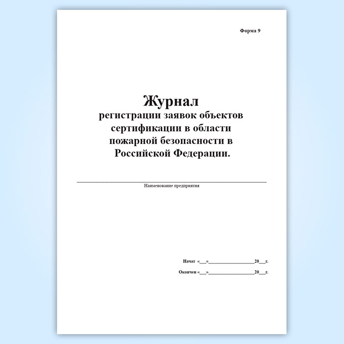 Журнал регистрации заявок объектов сертификации в области пожарной безопасности в Российской Федерации (форма 9) в Верее купить