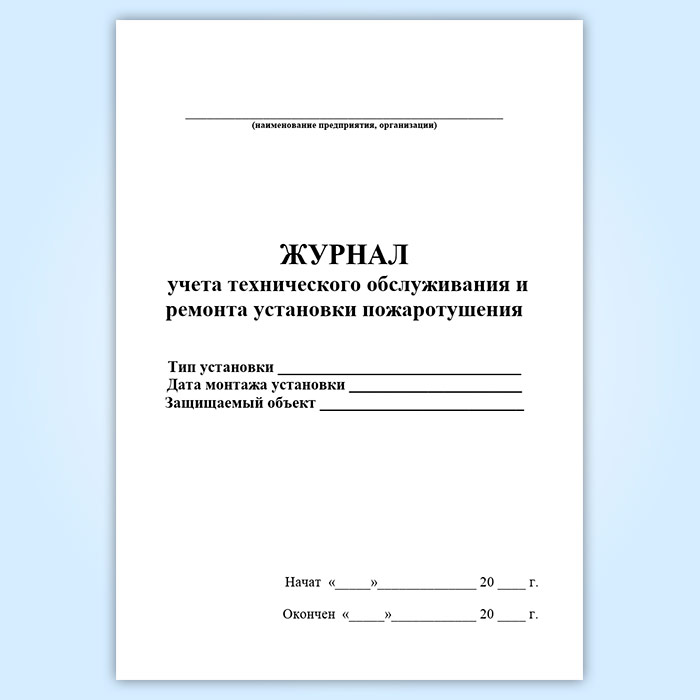 Журнал учета технического обслуживания и ремонта установки пожаротушения в Верее купить