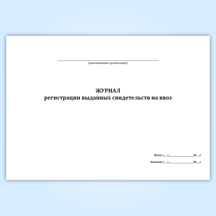 Журнал регистрации выданных свидетельств на ввоз в Верее купить