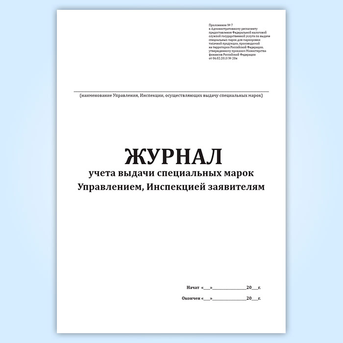 Журнал учета выдачи специальных марок Управлением, Инспекцией заявителям в Верее купить