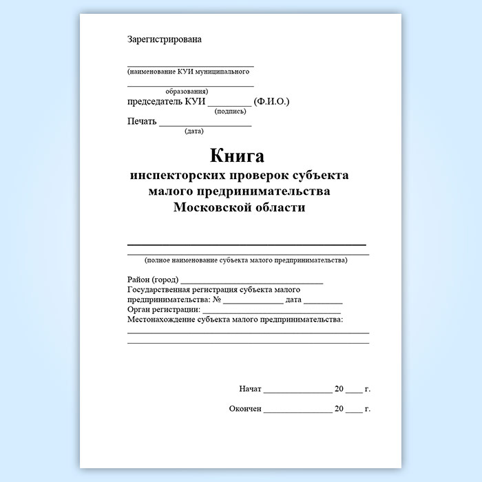 Книга инспекторских проверок субъекта малого предпринимательства Московской области в Верее купить