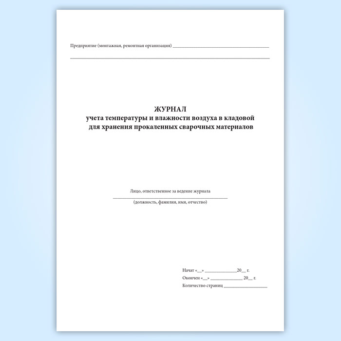 Журнал учета температуры и влажности воздуха в кладовой для хранения прокаленных сварочных материалов в Верее купить